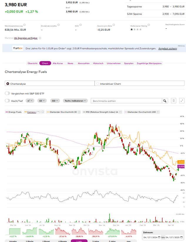 Bei Uran habe ich alles auf Energy Fuels konzentriert. Daneben habe ich nur noch Centrus Energy, die aber einen anderen Teil der nuklearen Wertschöpfungskette bedient.