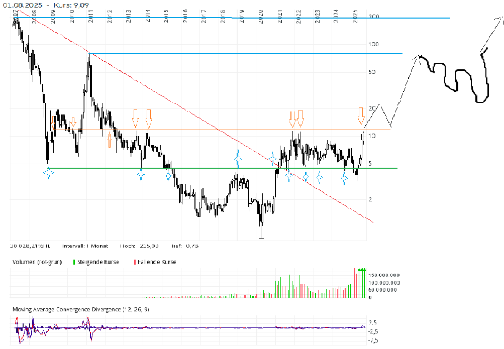 * Auch das Gesamtvolumen war an diesem Tag mit über **17 Millionen** Aktien außergewöhnlich hoch.