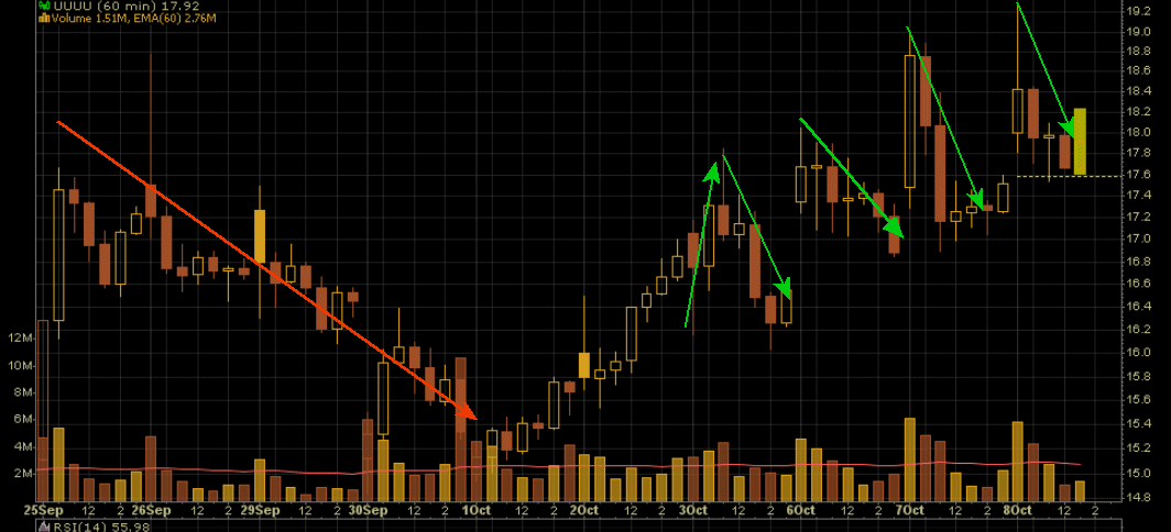 Erst wird hoch gekauft und dann kommt ein schneller heftiger Absturz.