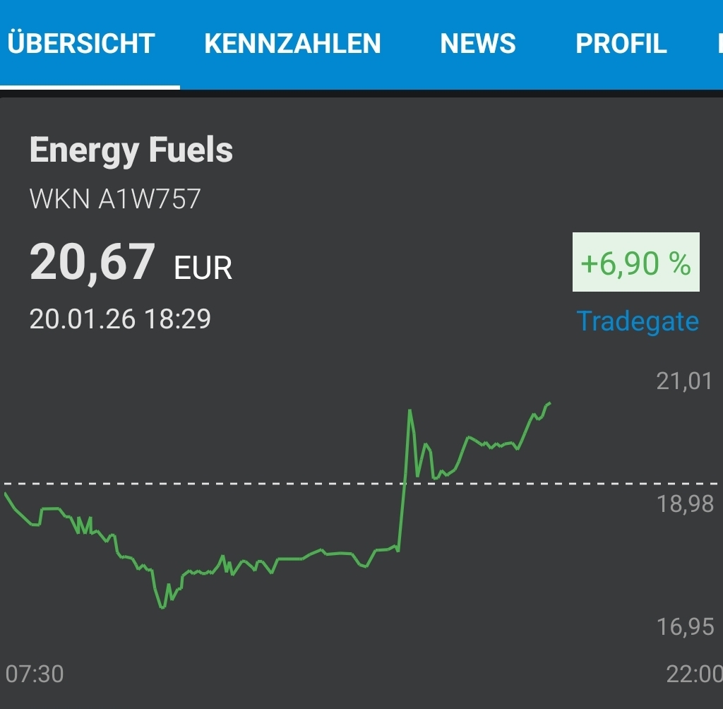 Innerhalb eines Tages schwankt der Kurs in einer Spanne von über 15%. Deshalb halte ich immer einen Großteil meines Aktienbestandes fest, während ich mit einem kleinen "spiele". EF ist längst für die USA systemrelevant, ein Tweet von Trump oder hier Bessent kann den Aktienkurs nach oben katapultieren und du siehst nie mehr deinen Einkaufskurs ! Zudem ist Mark Chalmers und seine Jungs des öfteren bei den Regierungsbeamten in Washington zur Beratung !