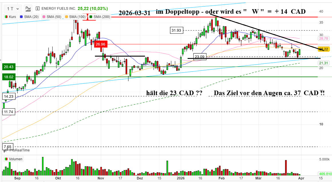 Energy Fuels ist ein führendes US-amerikanisches Unternehmen im Bereich kritischer Rohstoffe, spezialisiert auf Uran, Seltene Erden, Schwermineralsande, Vanadium und medizinische Isotope. Mit mehreren Uranprojekten im Westen der USA ist Energy Fuels der größte US-amerikanische Produzent von Natururankonzentrat und beliefert Kernkraftwerke. Das Unternehmen besitzt die einzige vollständig lizenzierte konventionelle Uranaufbereitungsanlage in den USA – die White Mesa Mill in Utah –, in der es auch Seltene Erden produziert und die Gewinnung medizinischer Isotope für neuartige Krebstherapien evaluiert. Darüber hinaus entwickelt Energy Fuels drei Schwermineralsandprojekte: das Vara-Mada-Projekt in Madagaskar, das Bahia-Projekt in Brasilien und das Donald-Projekt in Australien (in einem Joint Venture mit der Astron Corporation Limited). Das Unternehmen hat seinen Sitz in Lakewood, Colorado, und seine Aktien werden an der NYSE American („UUUU“) und der TSX („EFR“) gehandelt. Weitere Informationen finden Sie unter http://www.energyfuels.com .