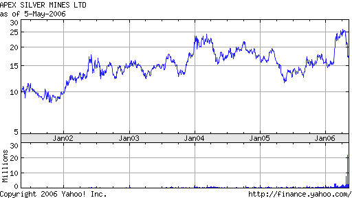 Still, Apex Silver Mines (SIL ) is developing its San Cristobal silver, zinc and lead project in southwestern Bolivia with production expected to start in the third quarter of 2007.