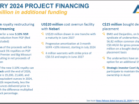 "Das Unternehmen bewertet den Bedarf an Betriebskapital, während das Projekt von der Inbetriebnahme über die Produktions- bis zur Hochlaufphase fortschreitet, und prüft verschiedene potenzielle Finanzierungsoptionen, falls zusätzliche Mittel erforderlich sein sollten."