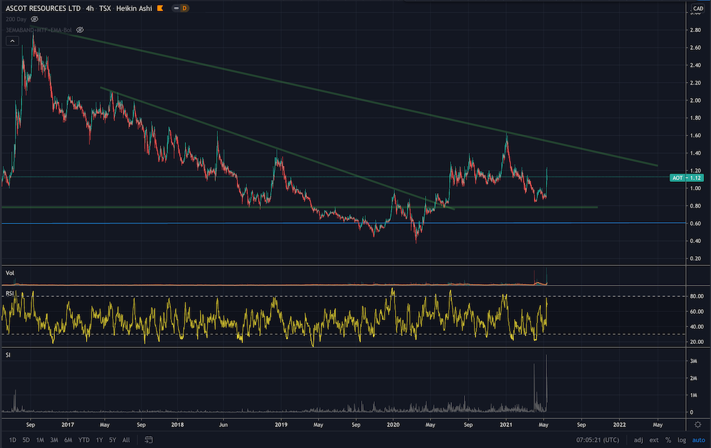Last Thursday (May 13), the company reported its Q1 financial results, posting a net income compared to a net loss in the same period last year. Ascot Resources saw its share price increase 33.33 percent last week to reach C$1.20...."