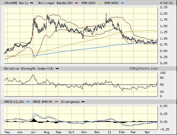 KORE shares are deeply oversold with evidence of ‘selling exhaustion’; bullish RSI divergence, MACD bull cross, and volume drying up. $0.80 is strong support (~15% below current levels, and there is 30%+ of near term upside potential back to previous support/resistance near $1.30).I have been accumulating KORE shares in recent days as I view a C$1.00 KORE share price to be a highly attractive deep value opportunity...." ![]()