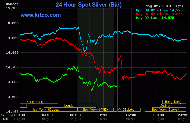 Ende April 2019 am Globex Markt NY Kitco für eine Unze Papiersilber ? <<