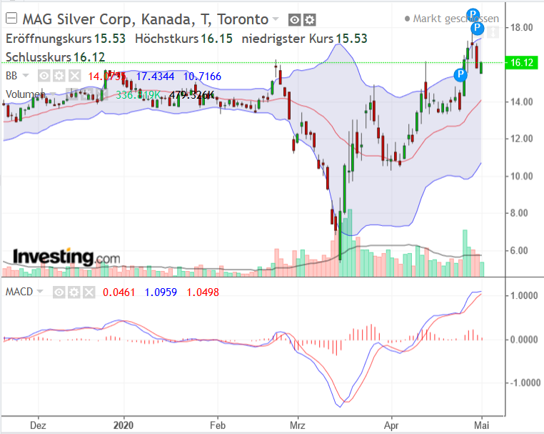 2016 stand MAG schon über 21 C$, um 15/16 C$ gibt es Widerstand und wenn die Aktie kräftig konsolidiert, könnte sich eine gute Chance auf einen Einstieg ergeben.