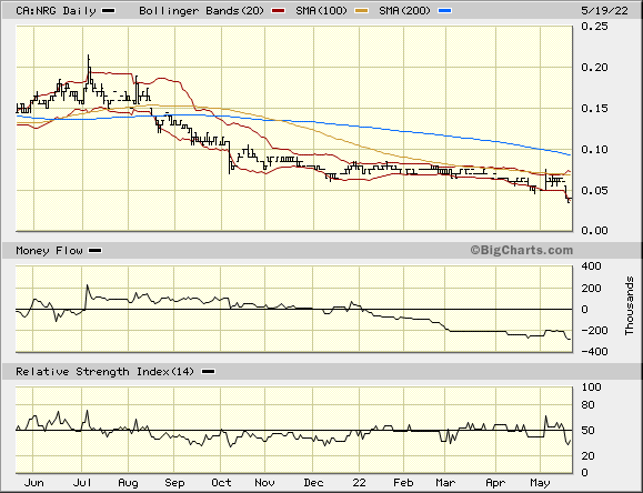 Jein : NRG eröffnete heute in TSX mit 0,04 C$ +14,1 % und rutschte wieder ab auf altes Mehrjahrestief 0,035, sh auch Chart. Tief aber OTC....
