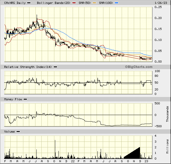 Jein : NRG eröffnete heute in TSX mit 0,04 C$ +14,1 % und rutschte wieder ab auf altes Mehrjahrestief 0,035, sh auch Chart. Tief aber OTC....