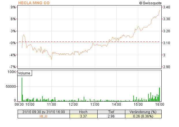 Wenn ich den Beitrag über Hecla auf goldseiten anschaue, wäre das der ideale einstiegspunkt gewesen bei 3$, danach stieg die Aktie auf +8%.