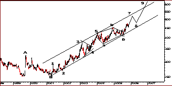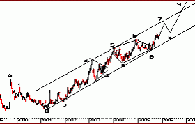This is my updated Elliott Wave analysis of the gold price. I am looking for a run to $515 around the end of the year followed by a short correction that will constitute the 7-8 move before the final surge into the top at 9. This top should breach $600 and also push above the top channel line of the trend that started in 2001. This will be a classic blow off signal and end the big bull run for the time being some time late next year. -