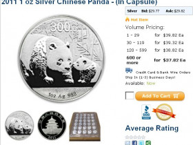 Silberpandas sind bereits ohne Shippingkosten beim Einkauf in China signifikant teurer als Kookaburras und Kollegen, - für jeden Großhändler. Dies ist auch durch hohe Abnahmezahlen nicht zu ändern.