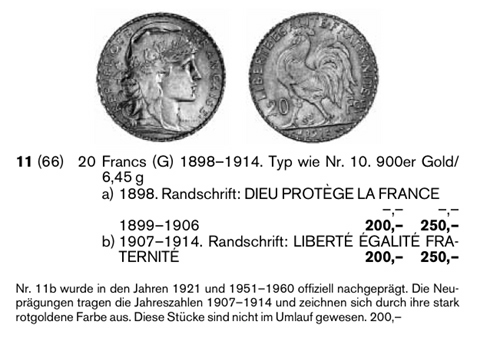Prägejahre 1852-1915; offizielle Neuprägung 1915