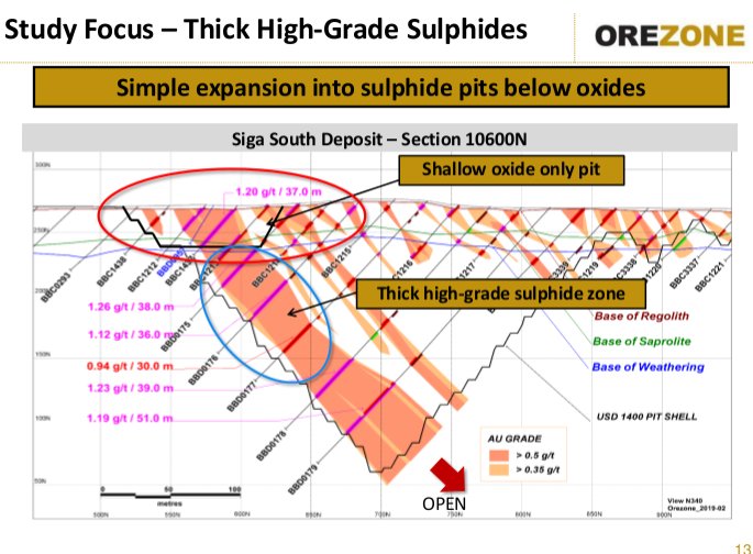 Die erschlossenen Goldreserven liegen verhältnismäiß oberflächennah innerhalb 120 m, in der Tiefe völlig offen, sh.angehängte Grafik.