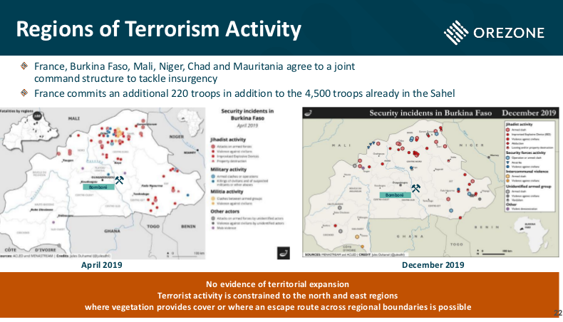 In Burkina Faso gibt es auf Grund der Geografie Gebiete die schwer zu kontrollieren sind. Vor einem Investment sollte man sich die Lage der Mine ansehen.