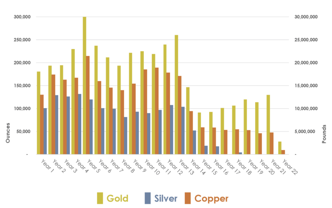 -- Die durchschnittliche Lebensdauer der Mine (22 Jahre) im AISC wird auf 1.051/Toz Gold geschätzt.