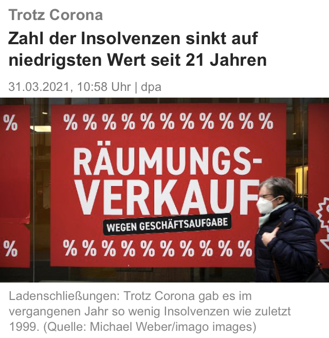 Notfalls zählt man die Insolvenzen nicht als solche, sondern nimmt sie als temporäre Coronaauswirkungen aus der Statistik.