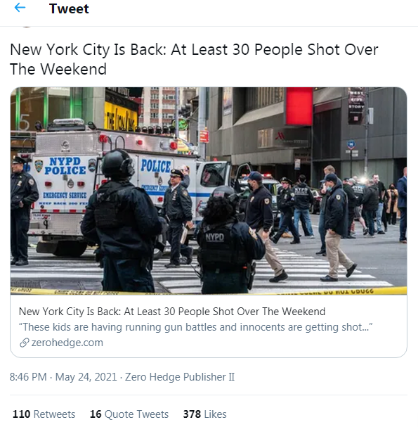 "New York City liegt im Sterben, dank COVID. Es hat wirklich den Broadway getötet. Wenn ich oft in ein Theaterstück ging, waren die große Mehrheit Touristen aus Übersee. Ich hörte oft die verschiedenen Sprachen, die um mich herum gesprochen wurden. New York City liegt eindeutig im Sterben, denn es hat ein Massenexodus nicht nur der Reichen stattgefunden, sondern sogar die Wall Street zieht still und leise nach Florida. Der Anstieg der Steuern, der die Lebensqualität verringert, wird nur noch mehr Menschen in den Süden schicken, und die heiligen Überreste werden bis 2042 allmählich verfallen. Sogar die Genehmigungen für Schusswaffen sind in New York in die Höhe geschnellt, da die Polizei nicht in der Lage ist, die Ordnung wiederherzustellen. Das East Village wurde am härtesten getroffen, weil so viele Geschäfte einfach weg sind. NYC ist dabei, auszusterben. Die Politiker sehen die Welt nur aus ihrer Perspektive. Sie begreifen überhaupt nicht, wie die Wirtschaft wirklich funktioniert. So steht NYC am Abgrund.