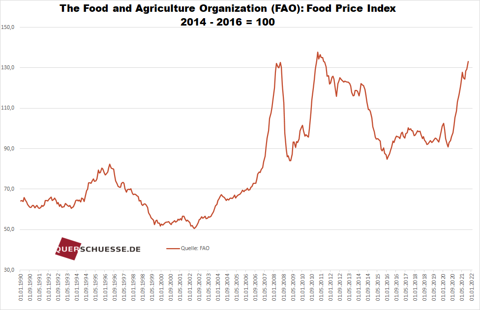 Bei einzelnen Subindizes sind die Preise noch massiver gestiegen, so bei Pflanzenfetten und -ölen um +76,4% und zum Vorjahresmonat.