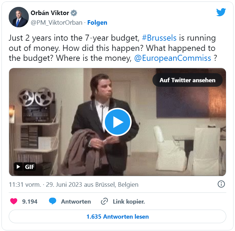 Die erste Frage, die Ministerpräsident Viktor Orbán in seinem Facebook-Post stellt, lautet: "Die einzige Frage, die jeder hier in Brüssel stellt, ist: Wo ist das Geld geblieben?"