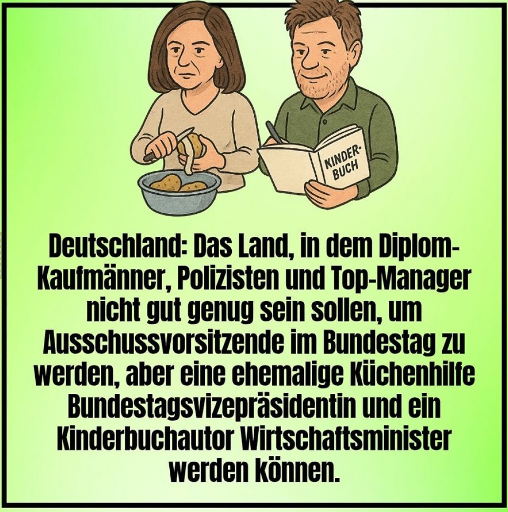 ...wundert sich in 20 Jahren, daß seine (an die Lohnentwicklung gekoppelte) Rente in einer dekarbonisierten postindustriellen Ökonomie ohne Chemie/Auto/... (wo BISHER die guten Löhne verdient wurden) so karg ausfällt 🥔🚰🍞