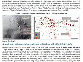 • AGB deposit 7.5 million tonnes at 1.74 g/t AuEq for approximately 418,000 oz AuEq at a preliminary strip ratio of 1.7:1