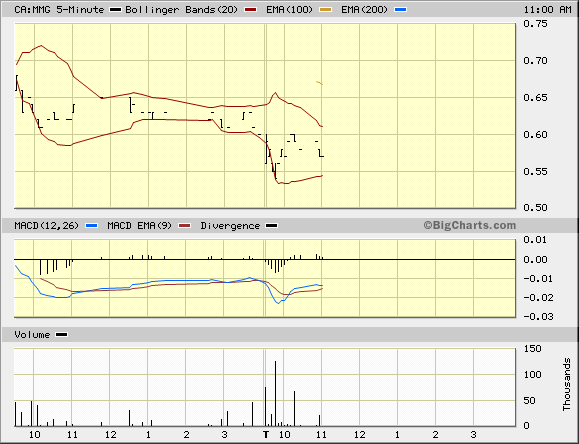 -- Kurs überverkauft.MMG war mit der damaligen Sägezahnformation schneller Fl, habe dennoch am 11.9 zu 0,88 C$ teilverkauft.