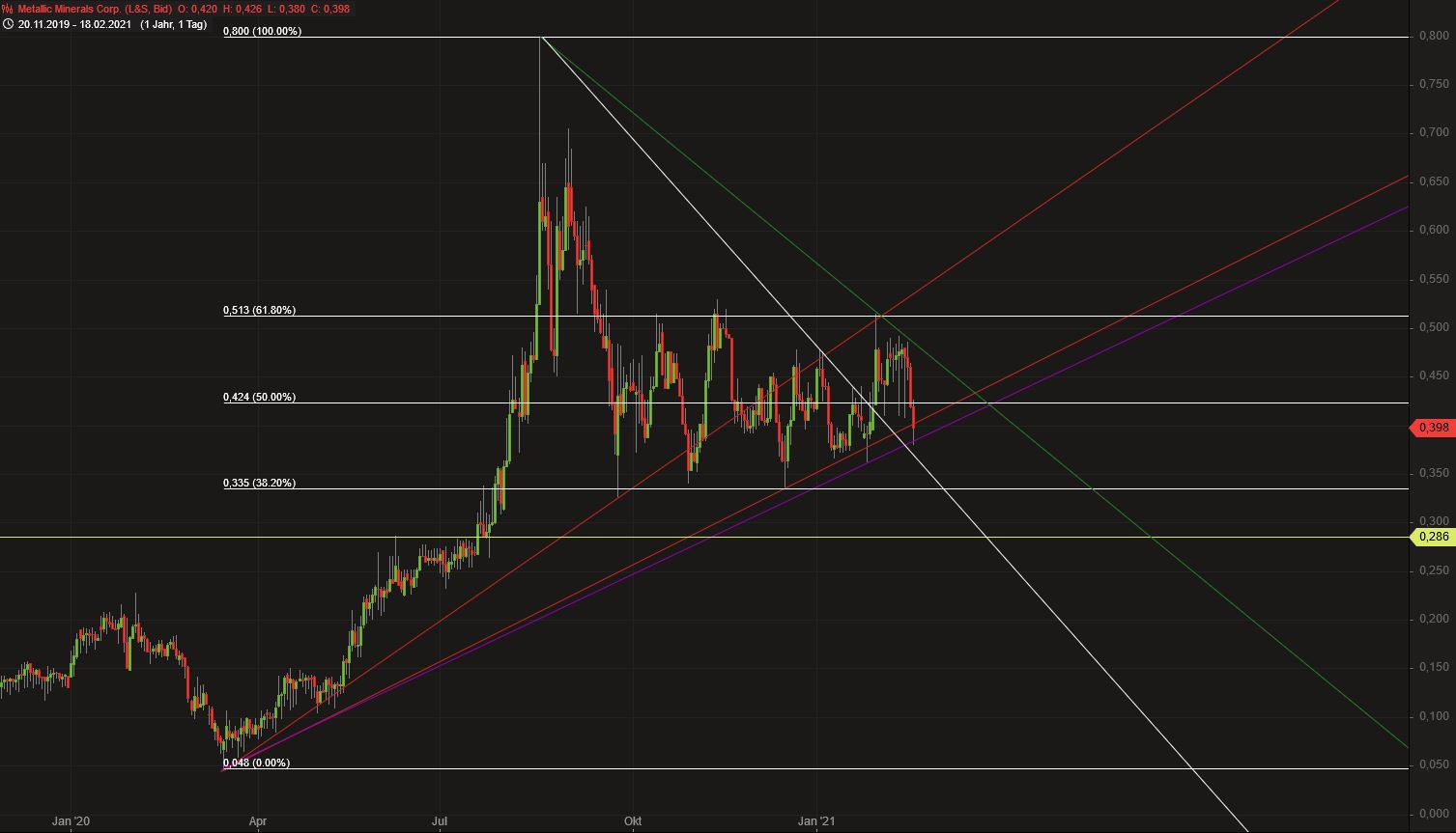 Falls der Lila aufwärtstrend nicht hält, sackt es ab ... die 0,45CAD würden rein Charttechnich viel Sinn machen (entspricht quasi den 0,285€)...