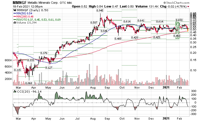 Metallic Minerals / MMG, MMNGF (TSX, OTC)