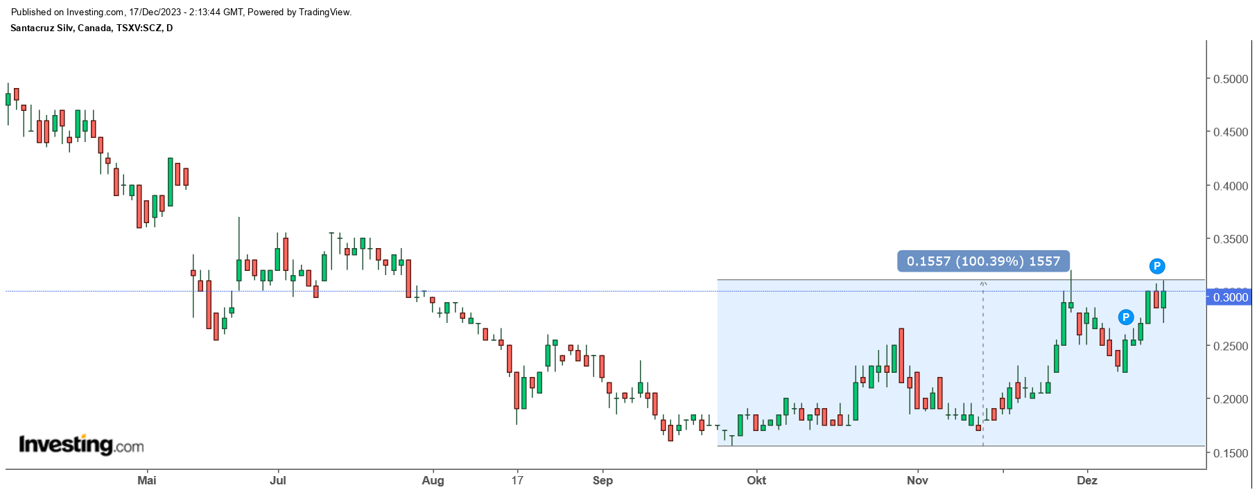 Die Quartalszahlen sehen danach aus, als wenn Santacruz endlich auf dem richtigen Weg ist nachhaltig schwarze Zahlen zu schreiben.Ein ausbrechender Silberpreis sollte unterstützend wirken
