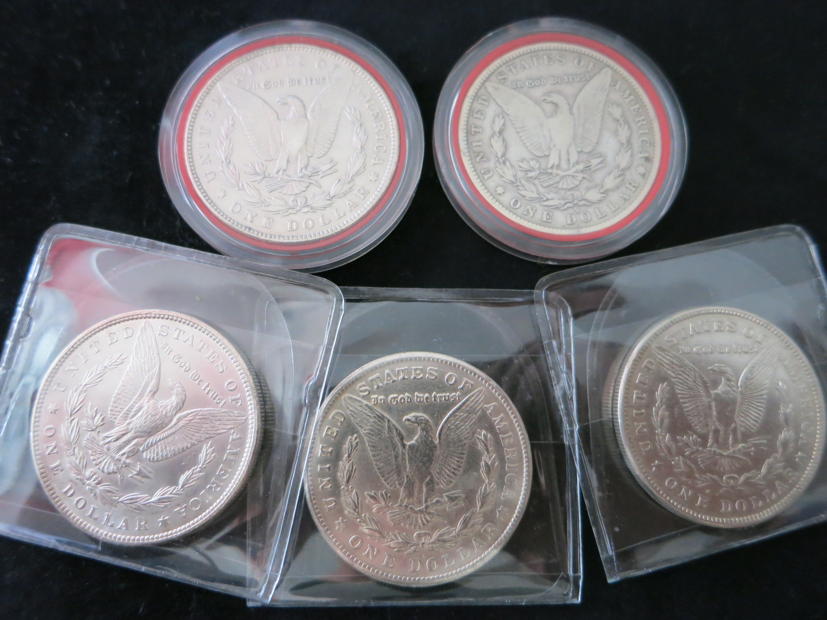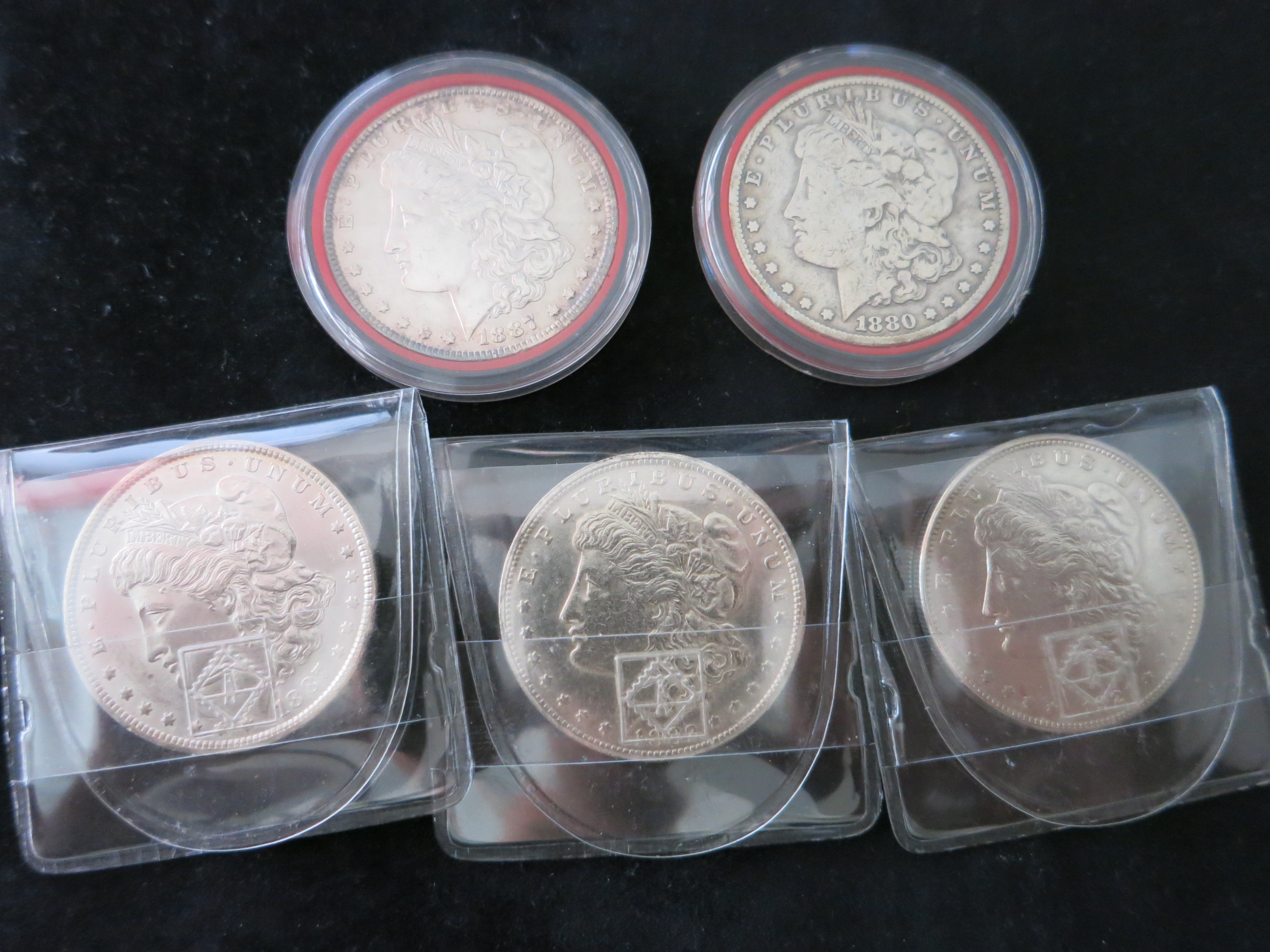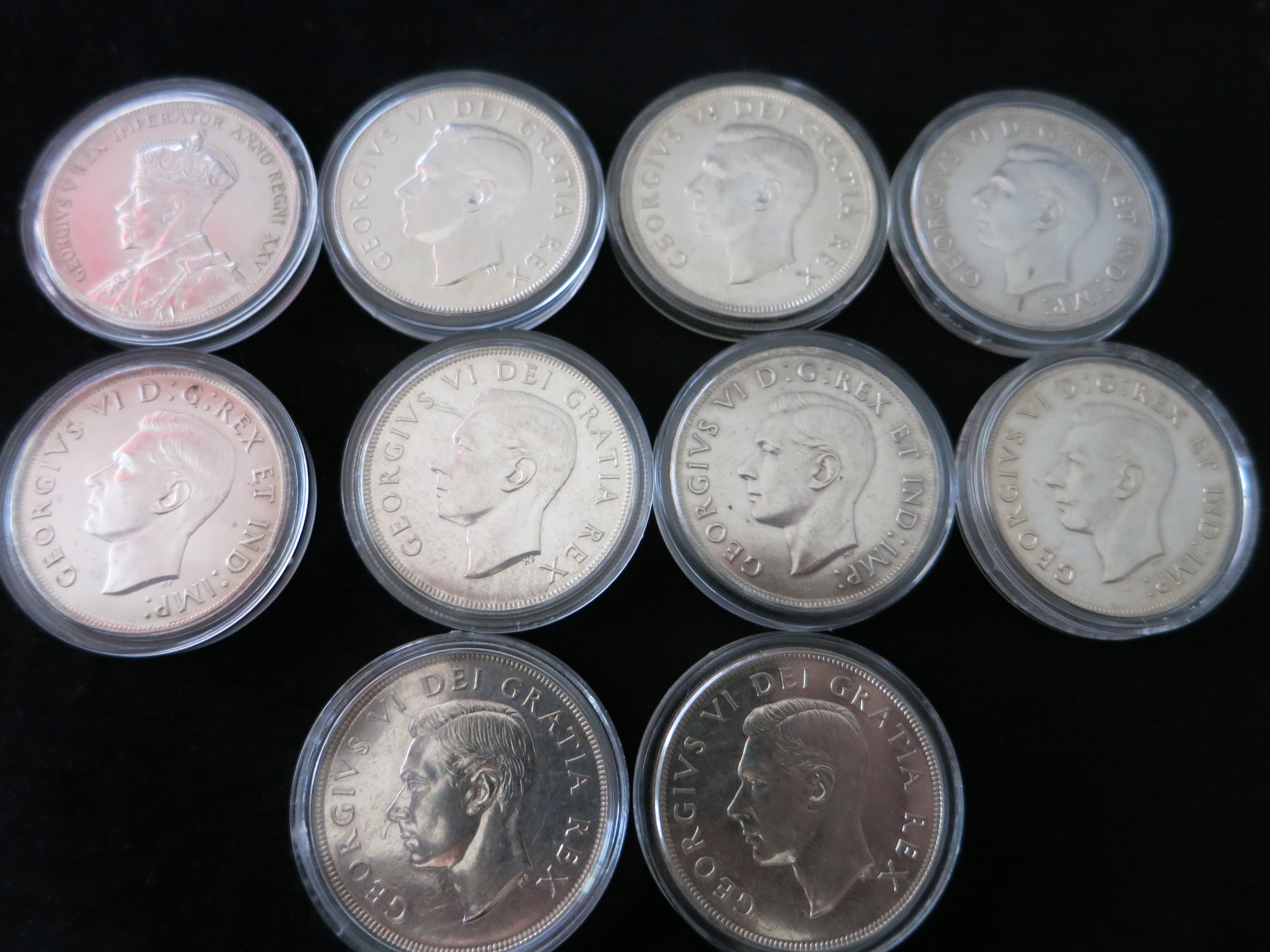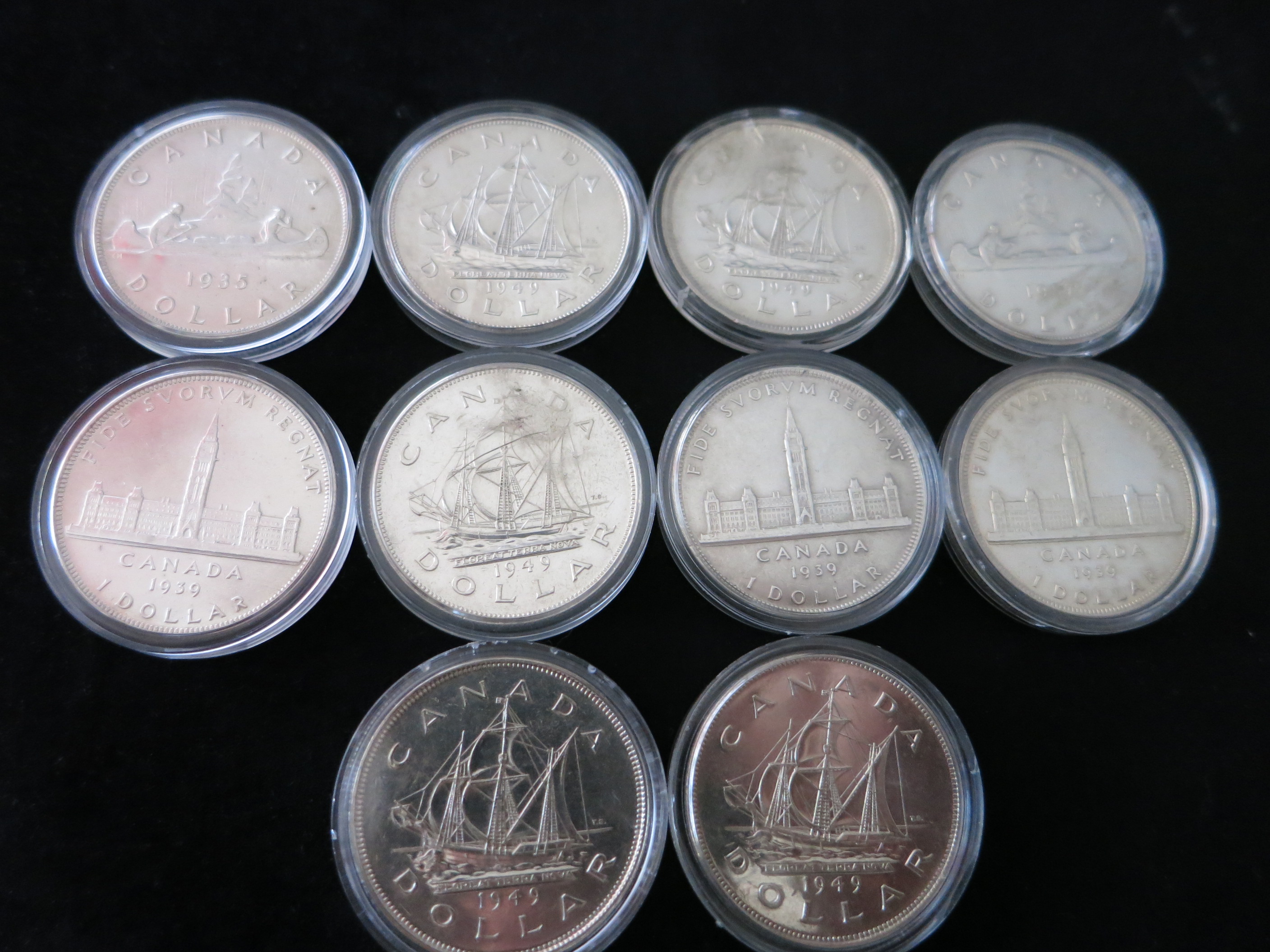 habe 15 Silbermünzen, davon 5 Amerikanische Ein Dollar Münzen und 10 Kanadische Ein Dollar Münzen. Sind alles ältere Stücke (Amerika ~1880) und Kanada 1935-1949.