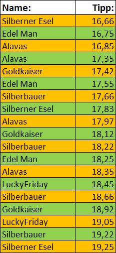- Jeder Silberspieler darf pro Runde des Silberspiels eine Tippanzahl nach seinem Belieben abgeben.