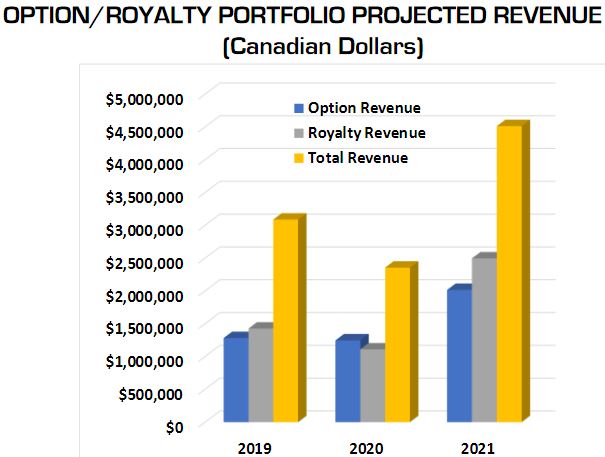 Ely Gold’s existing portfolio generates revenue from their producing royalties and from entering into sale contracts on properties they own while retaining some royalty rights. They expect total revenues to exceed $3,000,000 in 2019.