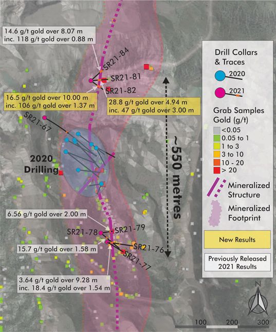• Scottie Resources Reports Intercepts 16.5 g/t Gold Over 10.0 Metres and 28.8 g/t Gold Over 4.94 Metres in Northern Blueberry Zone Extension