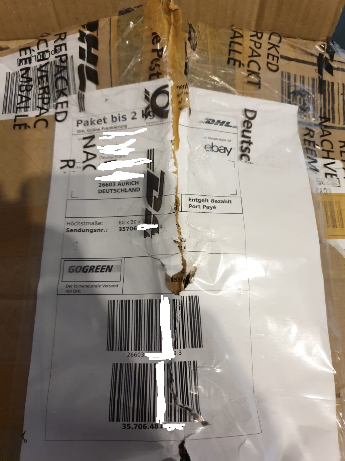 Das Paket wurde nachverpackt, es war auch wirklich nicht gut verpackt.
