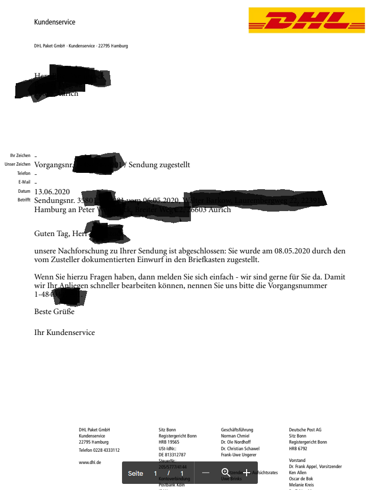 Mal sehen, ob die meine Anfrage verstehen, wie das Paket durch einen 3cm Schlitz gepasst haben soll.Nach der Aussage hast Du so gut wie gewonnen. Jetzt musst Du es nur noch zu Ende bringen.
