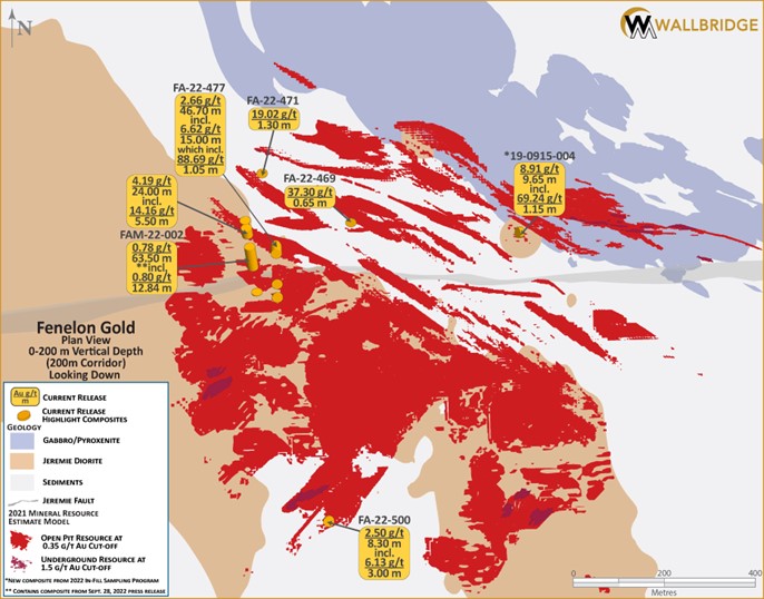 TORONTO, Oct. 20, 2022 (GLOBE NEWSWIRE) -- Wallbridge Mining Company Limited (TSX:WM, OTCQX:WLBMF) (“Wallbridge” or the “Company”) is pleased to report that new assay results from the in-fill sampling program at its 100%-owned Fenelon Gold Project (“Fenelon” or the “Project”)