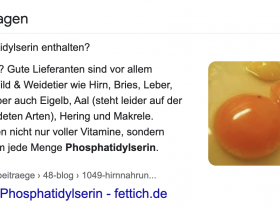 Phosphatidylserin (PS) & Phosphatidylcholin (PC) bzw. Lecithin sind diesbezüglich empfehlenswert. Deshalb habe ich in Teil 8 Energiekrise im Körper geschrieben, dass man durchaus täglich Eier konsumieren soll/kann. Im Eigelb findet sich sowohl PS als auch PC.