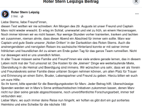Und wie es bei linken Zecken üblich ist, selbst eine Traueranzeige wird mit einem Bettelaufruf verbunden.