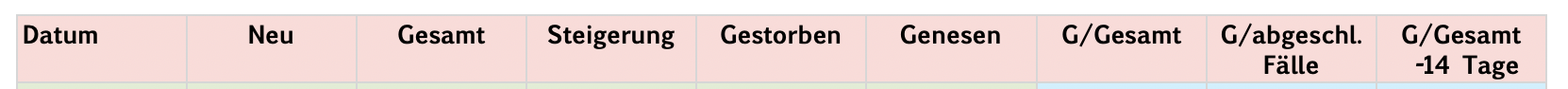 Da nehme ich dann den Durchschnitt dieser 3 Werte und teile ihn durch 0,14, der offiziellen Sterblichkeitsrate der WHO, und erhalte damit den Dunkelzifferfaktor, der angibt, wieviele Fälle es wohl tatsächlich schon gegeben hat.
