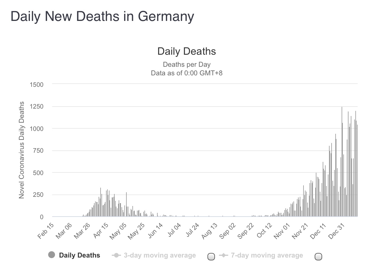Das in Schweden die Zahlen stark fallen oder in Deutschland stark ansteigen? Wurde die Impfung in beiden Ländern begonnen, auch in Schweden? Die Zahlen für Deutschland zeigen eindeutig, dass der Lockdown und die Impfung nichts