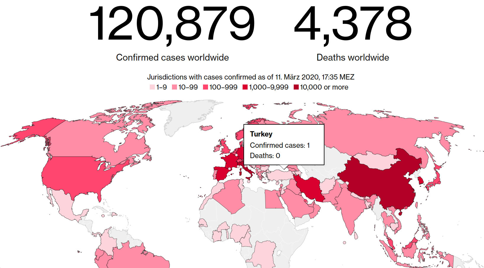 Ich verfolge die Fallzahlen seit einigen Tagen über Bloomberg und deren Corona-Newsletter. Dort werden die Zahlen täglich aktualisiert und grafisch aufbereitet ... nutze ich quasi als Start in den Tag.