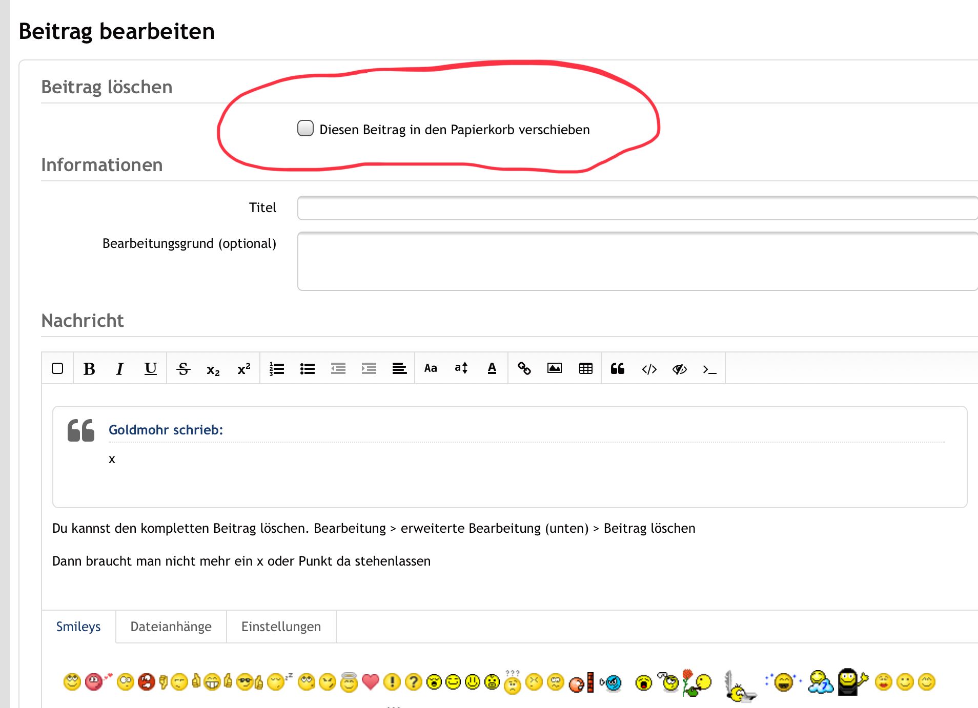 Du kannst den kompletten Beitrag löschen. Bearbeitung > erweiterte Bearbeitung (unten) > Beitrag löschen