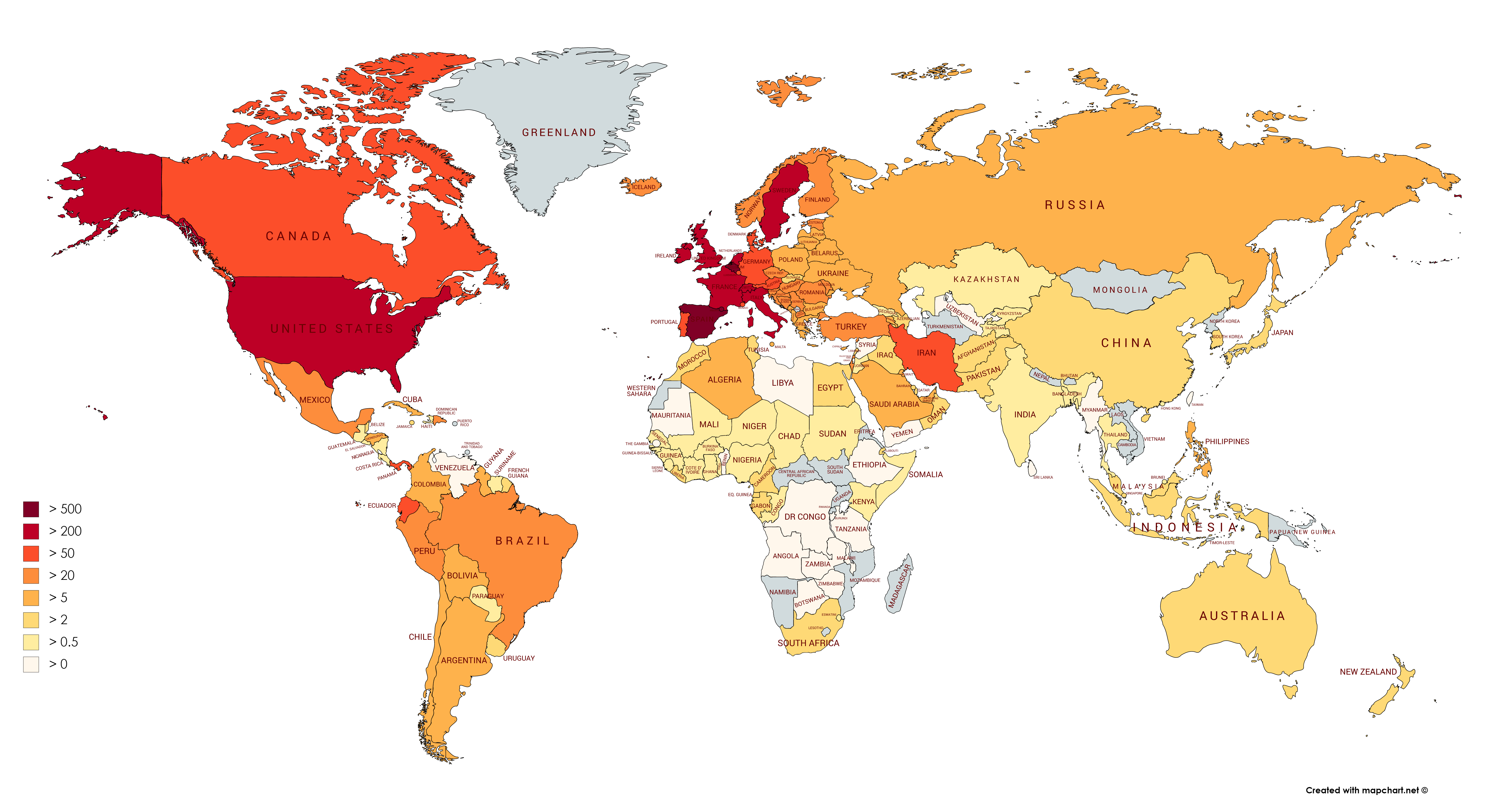 Hab mal 'ne Grafik zusammengebastelt, basierend auf Worldometers, zu lesen als "Corona-Tote pro Million Einwohner":