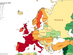 Aktualisierte Anzahl Corona-Tote pro Million Einwohner, in den Ländern Europas.