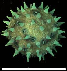 So Pollen sind ja in der Mehrzahl mit Durchmessern zwischen 20 und 50 µm recht gross. Es gibt aber auch wesentlich grössere, hier zum Beispiel Hibiskus mit 170 μm (nein, das ist kein Virus):