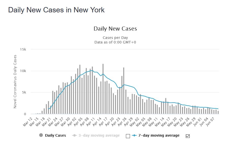 Was ich aktuell spannend finde, ist die Covid-19 Entwicklung in den USA. Einerseits Lockerung / Aufhebung des Lockdown, andererseits Massendemos. Sofern die Statistiken nicht total gefläscht sind, müsste das Auswirkungen haben. Aktuell ist es noch so, dass die sinkenden Zahlen der alten Hotspots im Osten wie New York (gilt ähnlich auch für New Jersey, Massachusetts, Illionis) durch steigende Zahlen im Süden / Westen (Texas, Florida, Kalifornien) fast wieder ausgelevelt werden.