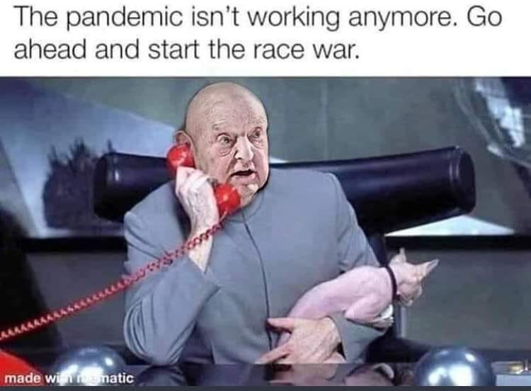 natürlich kann ich jetzt noch blm und das ganze linke gedöns mit einbauen was von den ami demokraten und europa demokraten, incl. flutung mit meist dummen, gefördert wird. wenn ich jetzt noch davon ausgehe das unsere demokraten tatsächlich überzeugungstäter sind und den genzen scheiss den sie verzapfen wirklich glauben und dabei nur die nützlichen idioten der chinesen sind gibt das vielleicht ein bild.