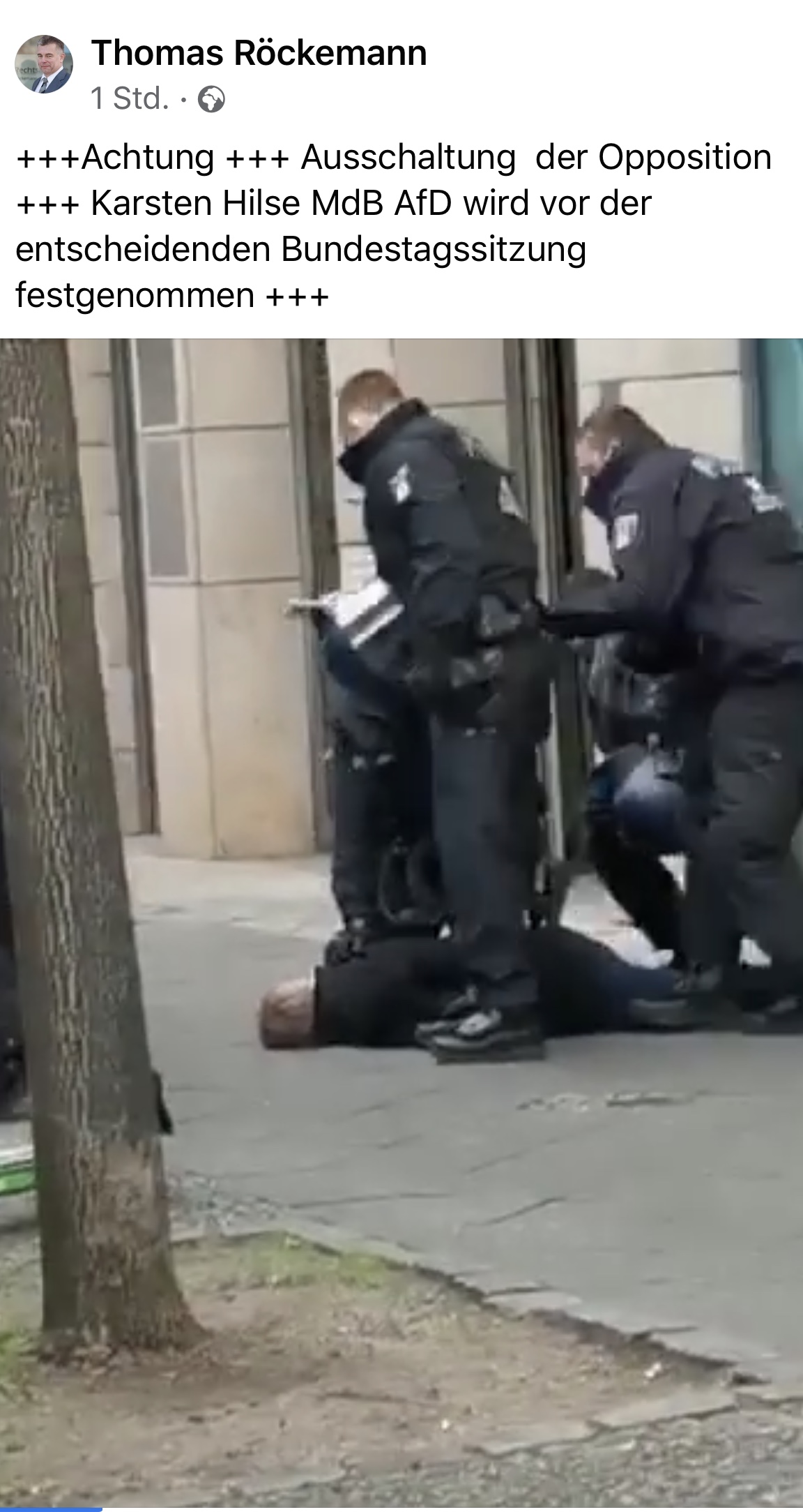 Hilse hatte keine Maske, sein Attest wurde von den Polizisten nicht anerkannt, also wurde er zu Boden geworfen. Mittlerweile ist aber wieder frei (jedenfalls im Video des Silberjungen zu sehen).
