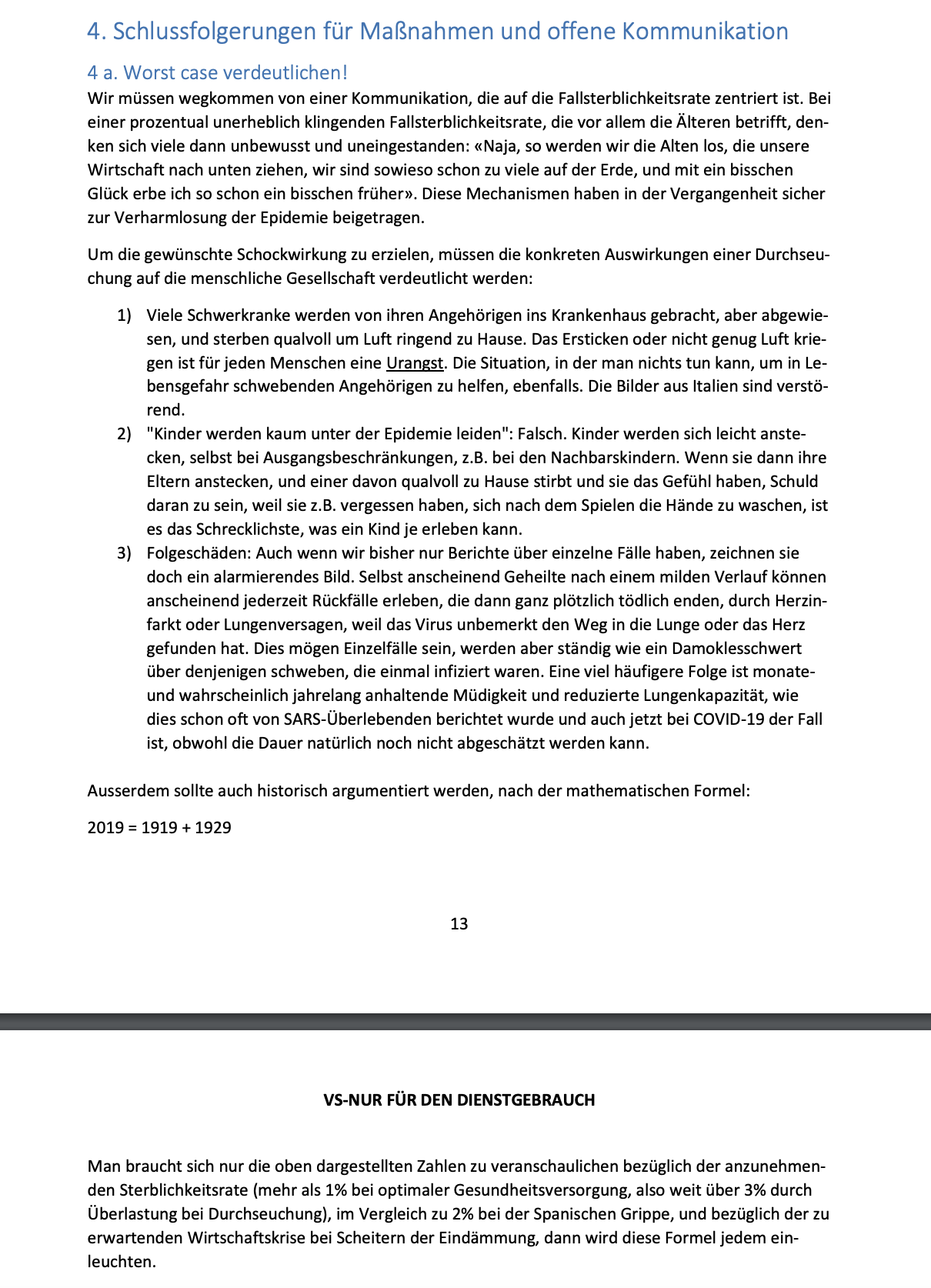 In ihrem Strategiepapier steht nämlich, wie man die Bevölkerung in Angst und Schrecken versetzen soll, um mittels dieser Schockwirkung dann die Menschen in ihrem Sinne gefügig und folgsam zu machen.